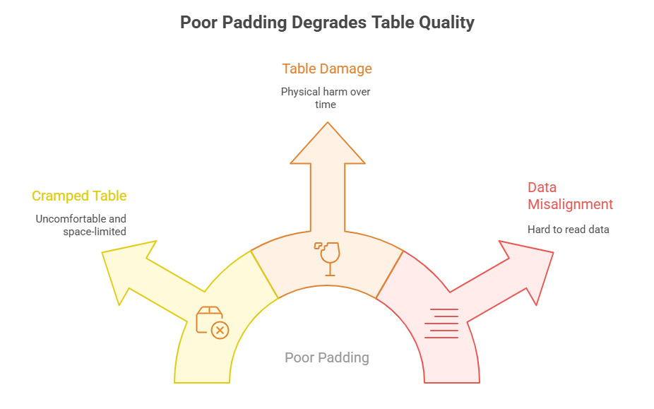 But why is this important? Well, without proper padding, your table might look cramped, uncomfortable, or even get damaged over time. Plus, in digital tables, poor padding can make data hard to read or misaligned.