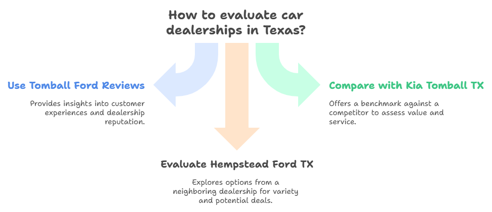 Scan reviews for resolution stories, ask process questions up front (payments, payoffs, title timelines), and compare policies with nearby stores—look at kia tomball tx for a cross‑brand benchmark and a ford dealership hempstead tx as a nearby Ford alternative. Choose the dealership that documents its steps in writing.